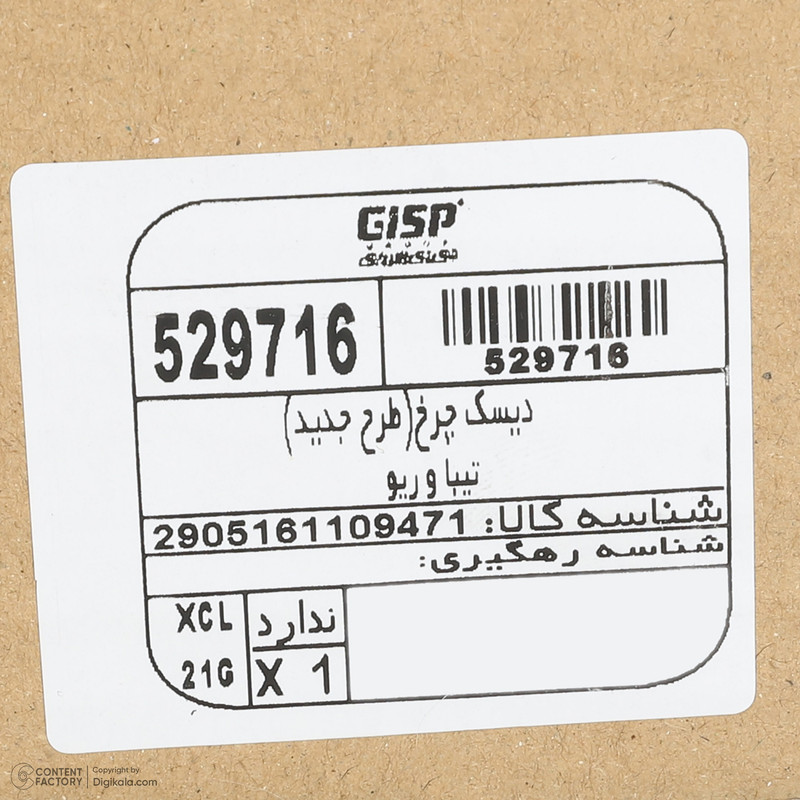 دیسک ترمز چرخ جلو جی آی اس پی کد 529716 مناسب برای ساینا و کوییک بسته دو عددی